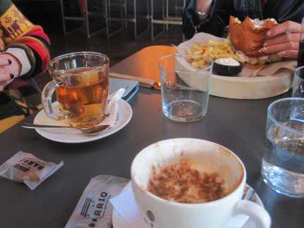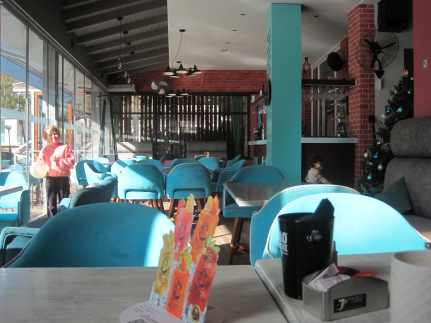 |  | We sat in "Titos" and ordered drinks. Back home, I ate some slices of turkey with cranberry sauce and then rode to the cafe. |