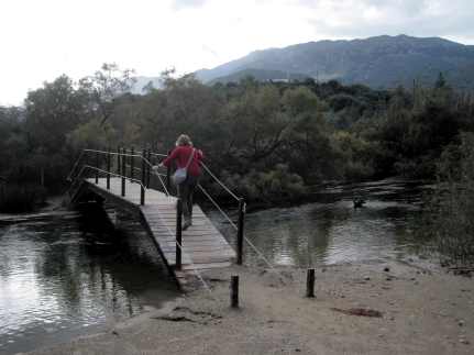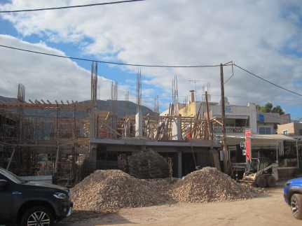 |  | Tuesday, December 26, 2023 No clothes wash today! Iliana suggested that we drive to Georgioupoli for a walk by the sea. We parked by the river and walked towards the beach. On the sea front, a taverna has been demolished an an hotel is being built. |
