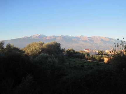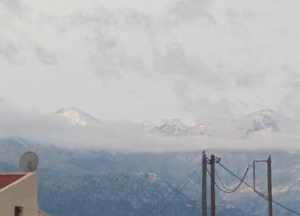 |  | Saturday, December 30, 2023 I awoke with a clear nose but it still felt sore and my eyes were watering. Iliana washed and hung out some sheets and then we took a short walk around the village. The White Mountains still aren't white but one snow-covered peak is visible. The sky is quite overcast with a few patches of blue. |