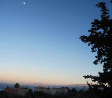 |  | To get some much needed exercise, I walked the kilometre to Chris' house to deliver the fuse tester. By the time I arrived home, the sun had disappeared behind the mountains and the moon was visible. |